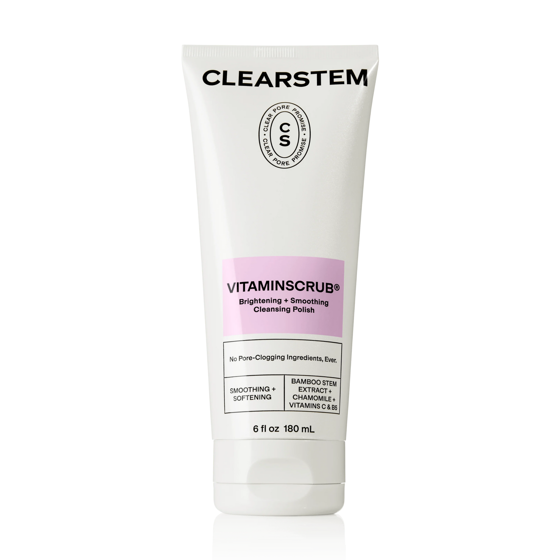 VITAMINSCRUB is a scrub cleanser containing Vitamin C, Vitamin E, Vitamin B5, and Green Tea. It gently polishes away dead skin cells helping to unclog pores, stimulate collagen, and brighten your skin. It is incredibly effective yet safe for all skin types, including sensitive.
